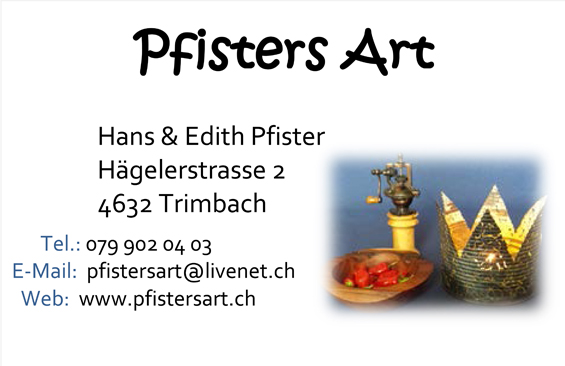 noch ist unsere Website nicht ganz fertig, aber wir arbeiten daran. Meldet euch bei uns, wenn euch unsere Produkte interessieren. Wir freuen uns auf den Kontakt! Hans und Edith Pfister